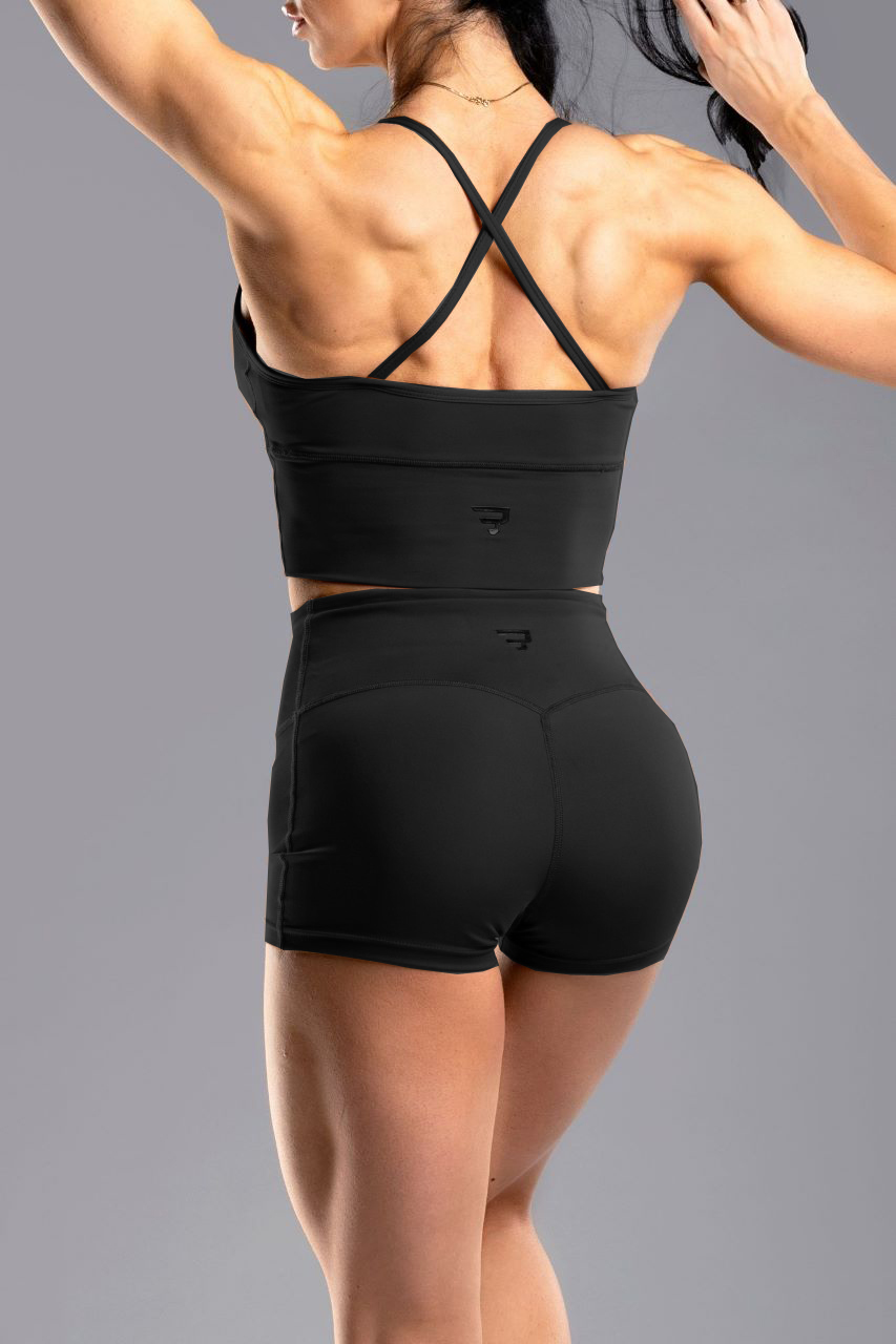 Fallega mótandi saumur að aftan og mjúk teygja í mittinu svo strengurinn rúlli ekki niður.