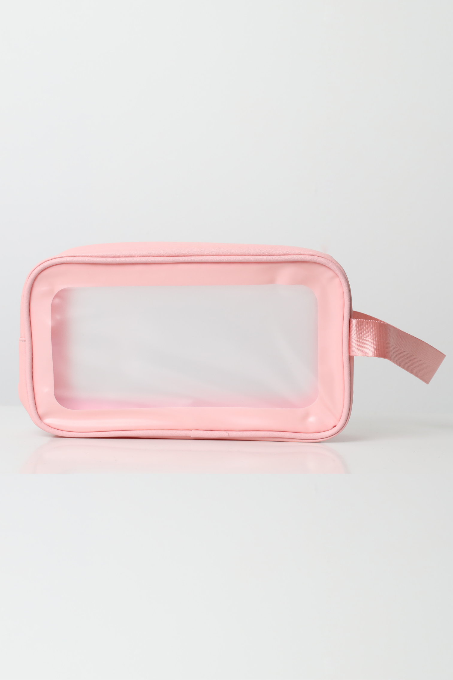 Snyrtitaskan er glær svo þú sérð allt sem er í henni.