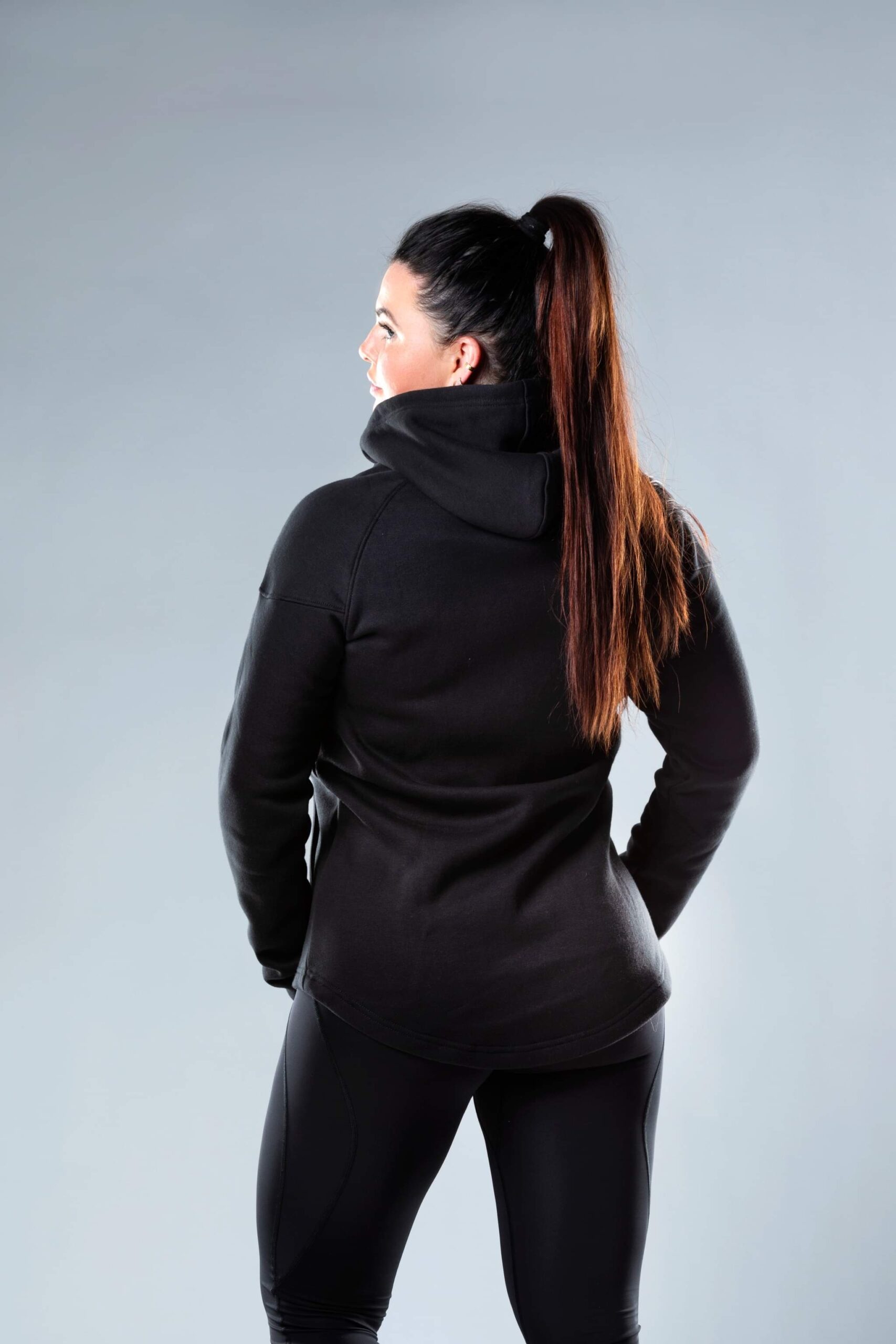 Peysan er síðari að aftan og með rennda vasa.